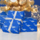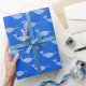 Ce papier d'emballage génial présente une image art numérique d'un petit garçon bleu magique adorable Narwhal. Le corps principal du Narwhal a une texture rugueuse et est bleu tandis que le ventre est gris bleu. Le Narwhal a un oeil noir avec une pupille blanche et une corne dorée brillante sur le visage. Il a aussi la queue délicate et les palmes.