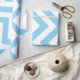 Papier Cadeau Bébé Bleu et Blanc Grandes bandes Verticales Chevr