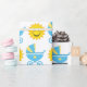 PAPIER CADEAU BÉBÉ BLEU & JAUNE ET SOLEIL JAUNE