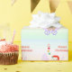 Bébé de chant de Noël sur un landau sur du Papier d'emballage cadeau dégradé pastel multicolore. Joyeux Noël et Bonne année 2019 textes personnalisables.