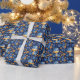 Papier Cadeau Bébé dinosaure bleu Fleurs jaunes et bleues