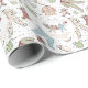 Ce papier d'emballage "Baby it cold out", neutre pour les hommes et les femmes, présente une jolie illustration dessinée à la main de pyjamas d'hiver, d'animaux en peluche et de bibs accrochés sur une ligne de vêtements, contre un motif de jupes de Noël, des animaux peluches, des bibs, des pacificateurs, des cadeaux et de minuscules étoiles jaunes. Nom, événement et date personnalisables. Arrière - plan blanc élégant.
