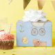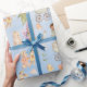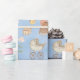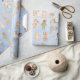 Papier d'emballage pour bébés avec des bébés internationaux aquarellés avec des animaux, des prams, des bouteilles, des canards en caoutchouc, des blocs et des animaux farcis sur un arrière - plan bleu et ombragé.