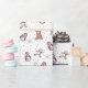 Ce papier d'emballage neutre pour le genre présente un adorable motif à la main d'animaux en peluche d'hiver (rennes, nounours et pingouins) parmi de minuscules étoiles jaunes et des flocons de neige, le tout contre un arrière - plan blanc. Parfait pour les premiers noël, baby shower d'hiver, anniversaire d'hiver, etc.