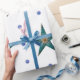 Papier Cadeau Belle étoile Turquoise en Blanc