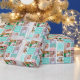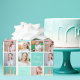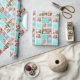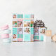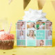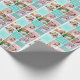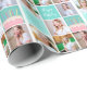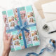Beau papier d'emballage turquoise avec un collage de 6 modèles photo de la fille d'anniversaire et son nom monogrammé sur les jolies carrés à côté d'un gâteau d'anniversaire amusant. Joli emballage cadeau d'anniversaire personnalisé pour une femme ou une adolescente.