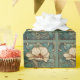 Beau carrelage art déco dans les tons vert, turquoise et ivoire montrant une jolie fleur crème couleur ivoire.