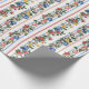 Beau papier d'emballage de bridal avec fraise et rayure florale bleu et blanc.