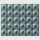 Papier Cadeau Belle paire bleue de chouettes assise sur une bran