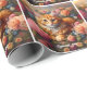 Papier Cadeau Belle Tabby Chat Orange et Fleurs