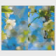 De belles cerisiers blancs fleurissent sur un arbre contre l'arrière - plan des feuilles verts et du ciel bleu. La beauté du printemps. Vous pouvez transférer cette conception à une variété d'autres produits, notamment du papier de tissu, des couvertures, des nattes et des sets de table, des sacs électroniques, des stocks de Noël, des sacs cadeaux, etc. Utilisez l'option Modifier la conception pour positionner l'image sur un produit doté d'une fonction d'ajustement/remplissage. Un papier d'emballage unique pour envelopper vos cadeaux. Profitez, achetez-en un et soyez heureux.sets de table