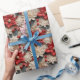Papier Cadeau Belles Poinsettias 3D Rouge et Blanc