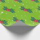 Papier Cadeau Berries Holly avec neige et étoiles sur vert clair