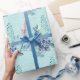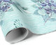 Papier Cadeau Berries pourpres et plumes bleues sur Turquoise pr