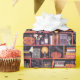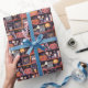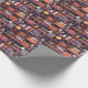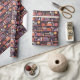 Papier d'emballage d'Halloween avec un motif avec une bibliothèque éffrayante, jack-o'lanternes, et chauves-souris. Parfait pour les fêtes d'emballage ou cadeaux d'anniversaire d'octobre. Oeuvre originale de Marketa Stengl.