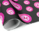 Enveloppement cadeau amusant imprimé avec un motif de ballons de Bingo rose, sur un arrière - plan noir.