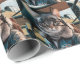 Wrapping paper features a photo of cat wearing a leather jacket, goggles, and an airplane in the background. Perfect for a pilot or aviation enthusiast. Birthday Cat Pilot and Airplane, Cool Funny Aviation Wrapping Paper design is Copyright of Soar In Style Designs LLC.