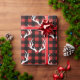 Papier d'emballage rustique avec cerf blanc et motif de bois. L'arrière - plan est noir buffle chèque plaid mais la couleur rouge peut être changée. Terminez cette période de vacances dans un style rustique audacieux et sauvage ! Reposez-vous parmi cette pile de cadeaux !