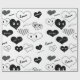 Papier Cadeau Black and White Hearts face Amour Xoxo
