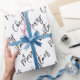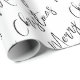 Black and white Christmas wrapping paper featuring a holiday greeting in a modern script font.