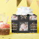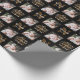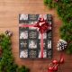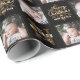 Christmas gift wrapping paper feature modern calligraphy merry Christmas and happy new year, family name typography, with personalized two photos in black, gold and white.
