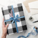 Papier d'emballage Blanc Noir Retro Noël Nouvel An Tartan Carreaux.