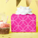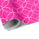 Papier d'emballage conçu avec un motif circulaire superposé, blanc sur rose chaud. Customisez facilement l'arrière - plan rose.