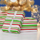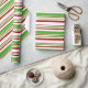 Cette décoration aux couleurs de Noël est ornée d'un motif rayé vert, blanc et rouge. Il peut être amusant d'utiliser du papier d'emballage comme celui-ci lors de la préparation de cadeaux ou de cadeaux qui sont donnés pour célébrer un anniversaire, un mariage, un anniversaire ou un autre événement.