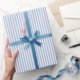 Papier Cadeau Bleu Bébé & Rayures Blanches
