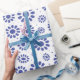 Joli emballage cadeau à motifs floraux bleu et blanc. marguerites bleues Abstraites sur blanc.