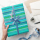 Papier enveloppant dans des bandes souples et mélangées dans des tons bleu, turquoise, aqua et vert mer inspirés de l'océan