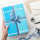Papier Cadeau Bleu Carré rayures
