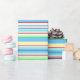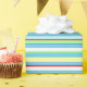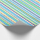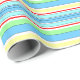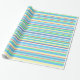Papier enveloppant avec un motif rayé en bleu, vert, jaune, blanc et rouge. Super pour toutes les occasions.