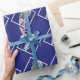 Enveloppement cadeau de crosse ou décoration de soirée d'équipe bleue avec bâtons de lessive motif sur arrière - plan bleu.