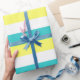 Papier Cadeau Bleu d'Aqua, jaune citron et blanc
