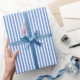 Papier Cadeau Bleu de barbeau et rayures blanches
