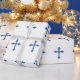 Papier Cadeau Bleu de garçon de confirmation de croix de baptême