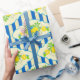 Papier Cadeau Bleu d'été et citrons et Motif Feuille