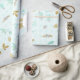 Papier Cadeau Bleu doux or pailleté aquarelle floral