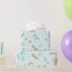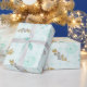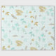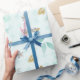 Papier Cadeau Bleu Doux Pailleté Or Aquarelle Floral