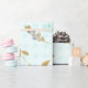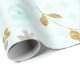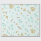 Papier Cadeau Bleu Doux Paillettes Dorées Aquarelle Floral
