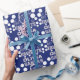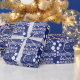 Papier élégant de bleu marine d'Olivia le père noël et blanc drôle mignon nommé fait sur commande de Noël d'emballage cadeau
