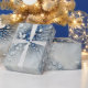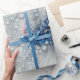 Papier Cadeau Bleu élégant, gris et blanc en plumes
