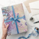 Papier Cadeau Bleu Élégant, Gris, Plumes, Perles, Perles, Léger