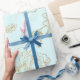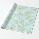 Papier Cadeau Bleu en pastel, avec des roses d'or