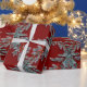 Papier Cadeau Bleu Épinette Bleu Baies rouges Lattice Rouge fonc