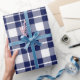 Un papier d'emballage conçu avec un motif de plaid bleu marine et blanc de grande taille. Customisez le arrière - plan blanc entre autres options.