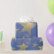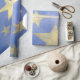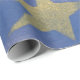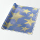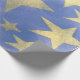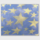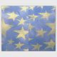 Ce papier d'emballage présente des grandes étoiles dorées poêlées sur un arrière - plan bleu. Peut être utilisé pour un thème patriotique ou pour la plupart des autres occasions.