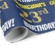 Ce design papier d’emballage comporte un message comme "23e anniversaire de GEORGIANA!", avec le "23e" ayant une apparence de couleur fausse/imitation or, et avec le nom et "anniversaire" dans une police amusante et audacieuse. Le nom est personnalisable, et l'arrière - plan est de couleur bleue. Un papier comme celui-ci pourrait peut-être être utilisé pour envelopper les cadeaux d'anniversaire donnés à quelqu'un pour célébrer son vingt-troisième anniversaire. [~Z0000209]