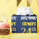 Ce design papier d’emballage comporte un message comme "24e anniversaire de STEPHEN!", avec le "24e" ayant une apparence de couleur fausse/imitation or, et avec le nom et "anniversaire" dans une police amusante et audacieuse. Le nom est personnalisable, et l'arrière - plan est de couleur bleue. Un papier comme celui-ci pourrait peut-être être utilisé pour envelopper les cadeaux d'anniversaire donnés à quelqu'un pour célébrer son vingt-quatrième anniversaire. [~Z0000209]